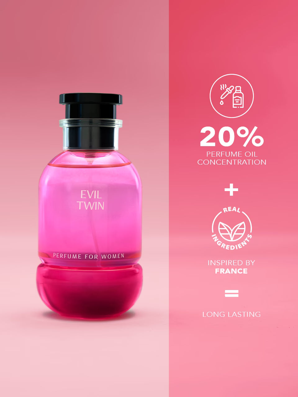 Unleash your bold and captivating side with Evil Twin Women Perfumes. This fragrance is designed for the modern woman who isn’t afraid to stand out. A perfect balance of floral and musky notes creates an alluring scent that lingers throughout the day, leaving a memorable impression wherever you go. Elegant, mysterious, and unforgettable, Evil Twin is the signature scent for women who embrace their individuality.